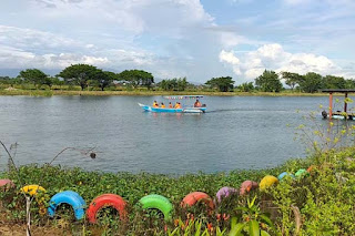 Ditengah - tengah tempat wisata telah dibuat danau buatan yang cukup besar, dan danau inilah ditempatkannya wahana - wahana air tersebut. dan di danau tersebut juga di beri ikan - ikan. jadi pasti mantul.